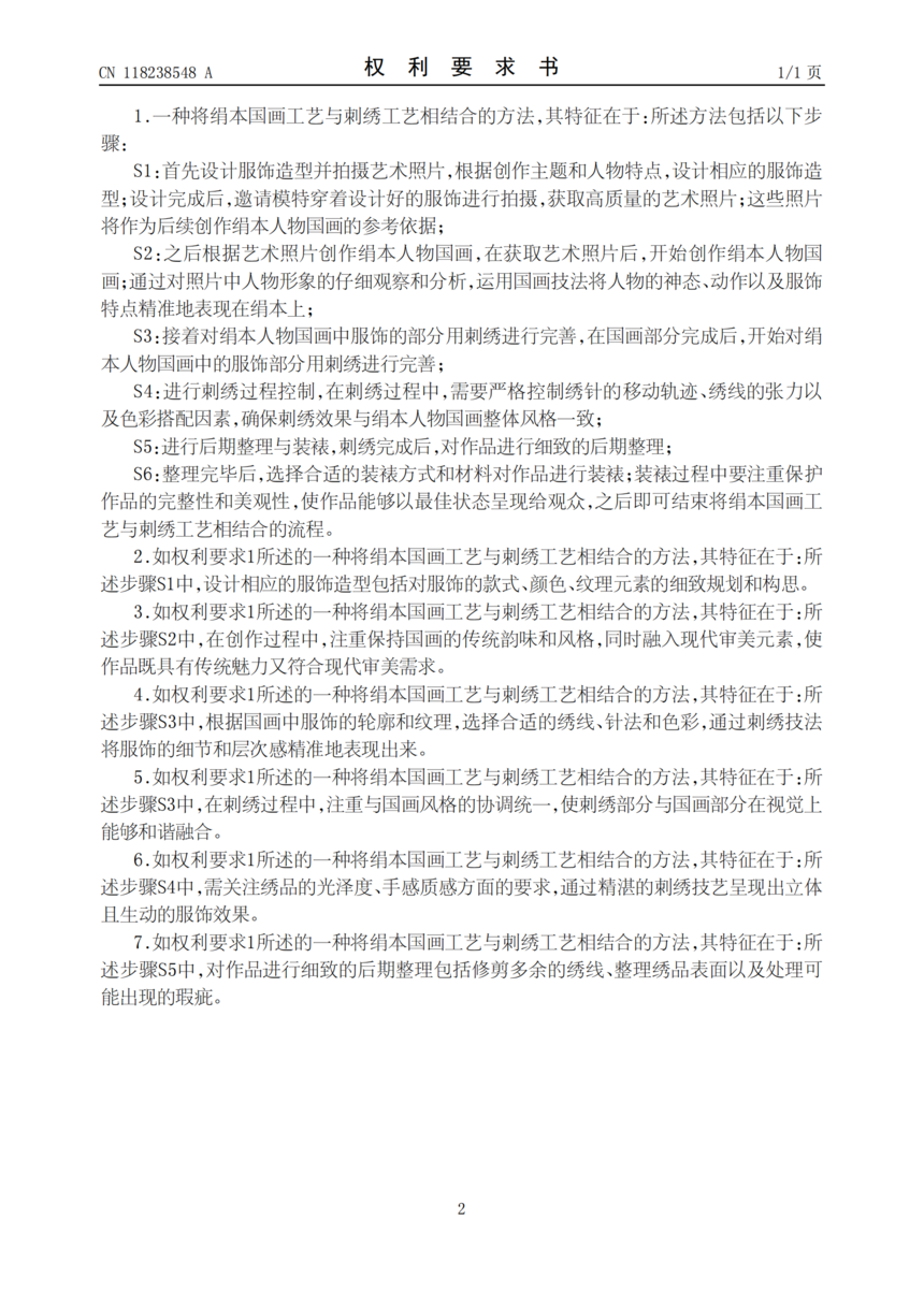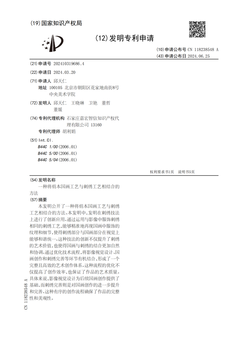 一种将绢本国画工艺与刺绣工艺相结合的方法_邱天仁
